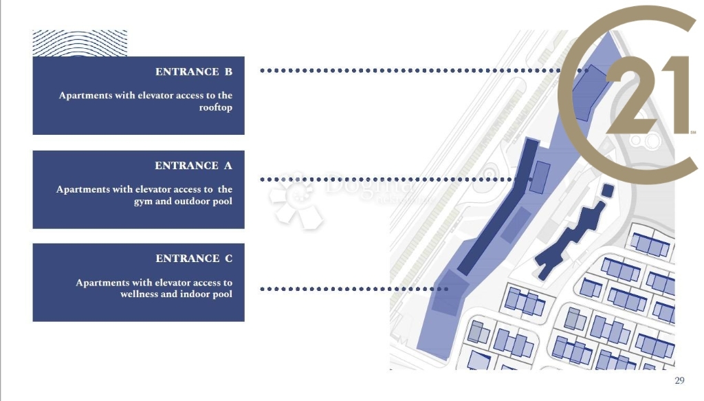 Resort je uzavřeného typu, který zajišťuje údržbu, dohled, možnost využití všech dostupných služeb v rámci něj (restaurace, golf, posilovna, SPA, olympijský bazén na střeše…).