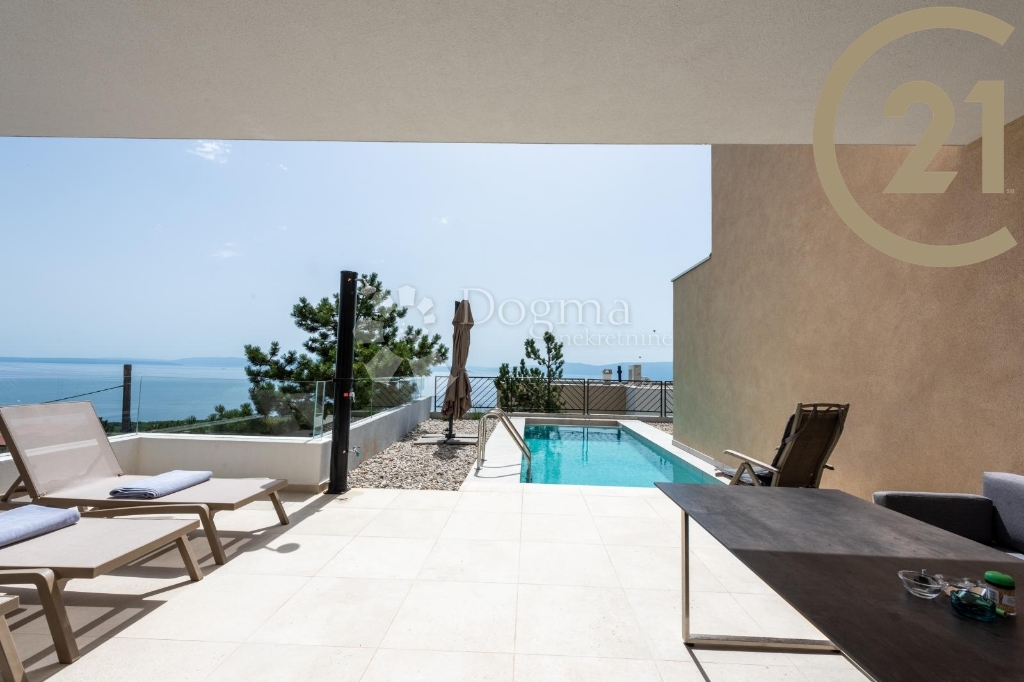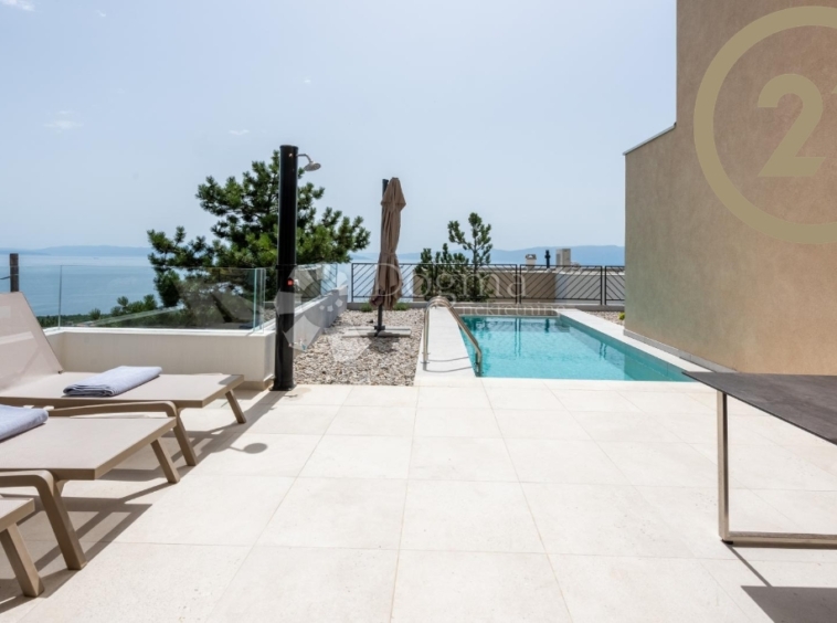 Dvůr se skládá z vyhřívaného bazénu, prostoru na opalování a terasy s otevřeným výhledem do zeleně a na moře.
