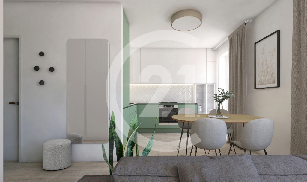 Ponúkaný 1-izbový apartmán s predzáhradkou nachádzajúci sa na prízemí bol navrhnutý tak, aby priestor odzrkadľoval požiadavky dnešných dní – flexibilitu, účelnosť, a aby 67,83 m2 bolo využitých čo najefektívnejšie a zmysluplne. Apartmánový byt bude pripravený pre budúceho majiteľa v kvalitnom štandardnom prevedení.